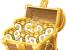 3D坦克装满金水晶的箱子