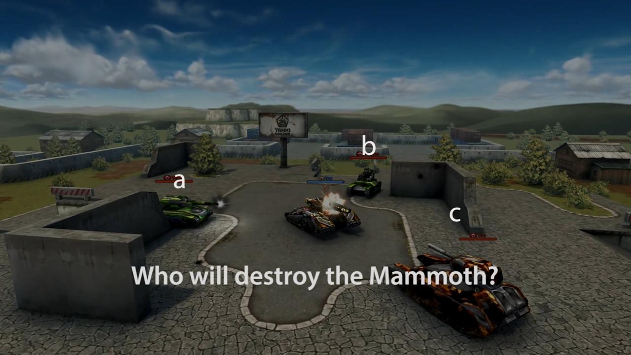 在上期节目中,一辆转换过的镭射炮,向运动场的一辆重型坦克射击,请猜猜看你需要多少炮,来击毁敌人,正确答案是23,这是幸运者名单,再来关注新问题,谁将击毁猛犸象?